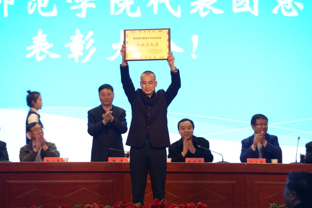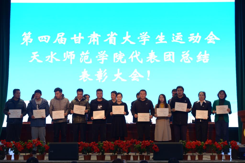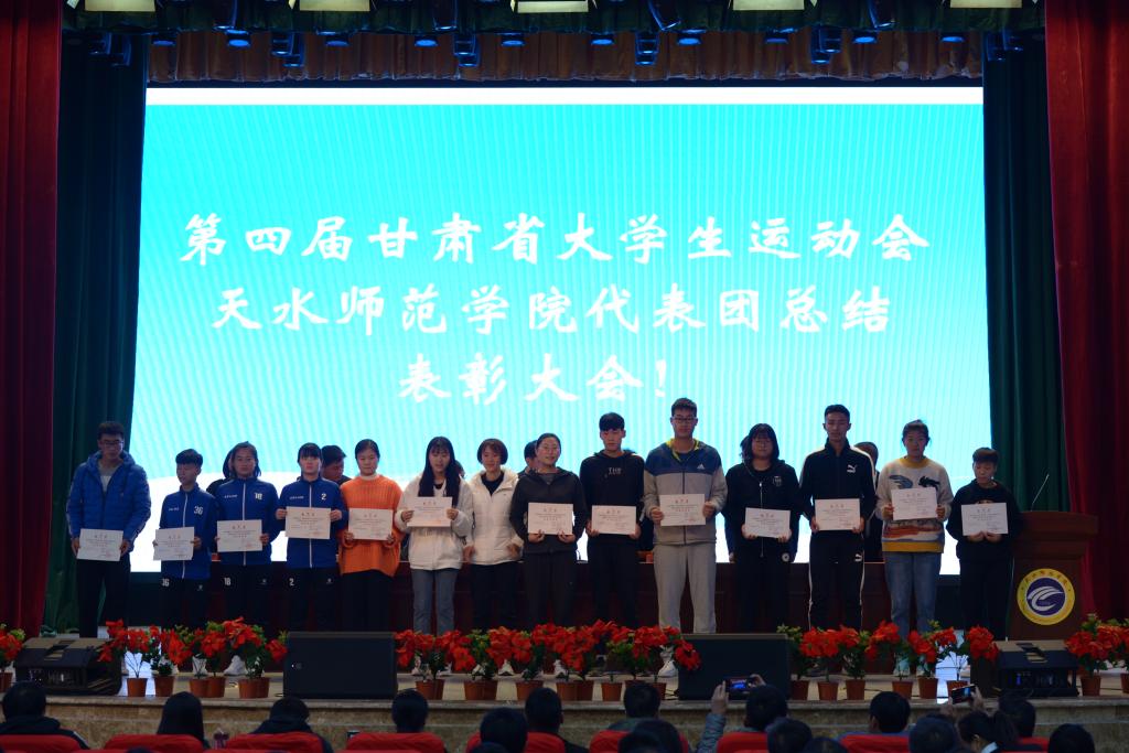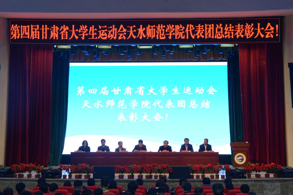 10月14日下午,第四届甘肃省大学生运动会天水师范学院代表团总结表彰大会在学校文化大礼堂召开。学校党委副书记、校长安涛出席会议并为受到表彰的单位和个人进行颁奖。校工会、学生处、团委、二级学院相关负责人,pp电子模拟器官网全体师生和代表团全体运动员、教练员、工作人员共计800余人参加大会。大会由副校长、校体委主任安建平主持。