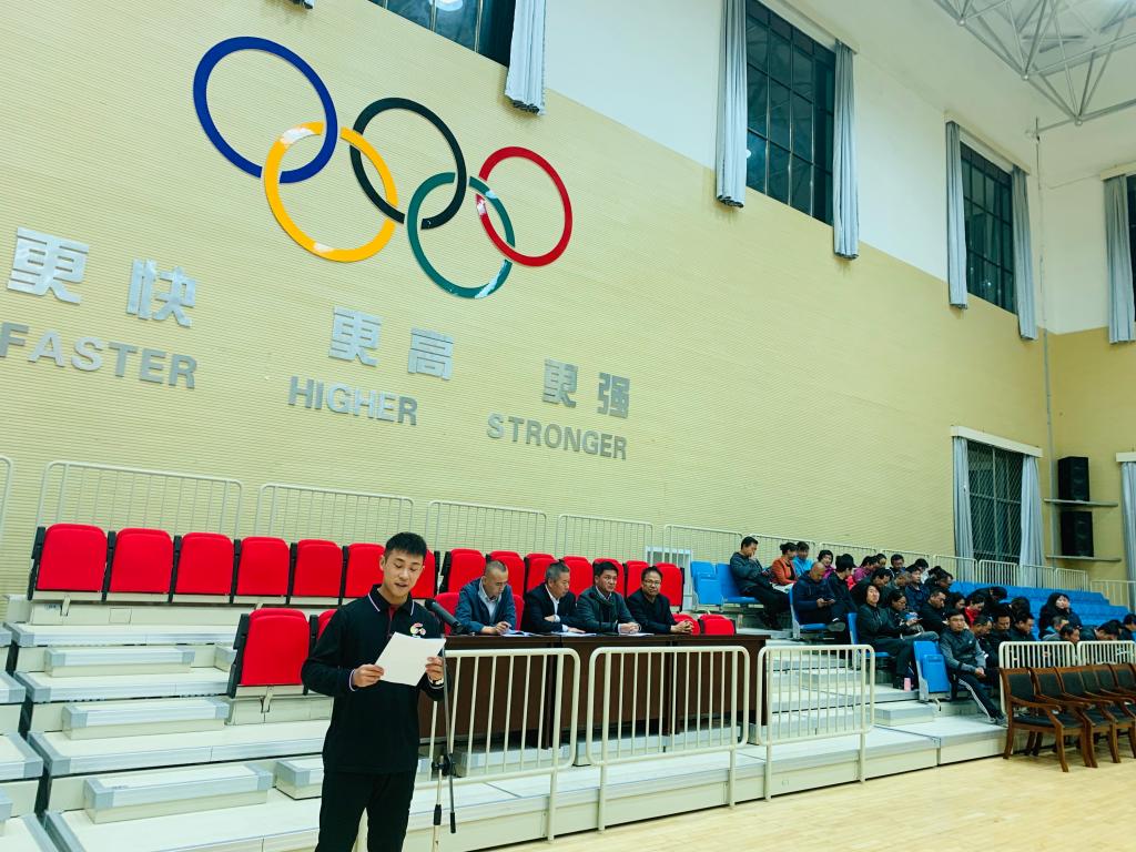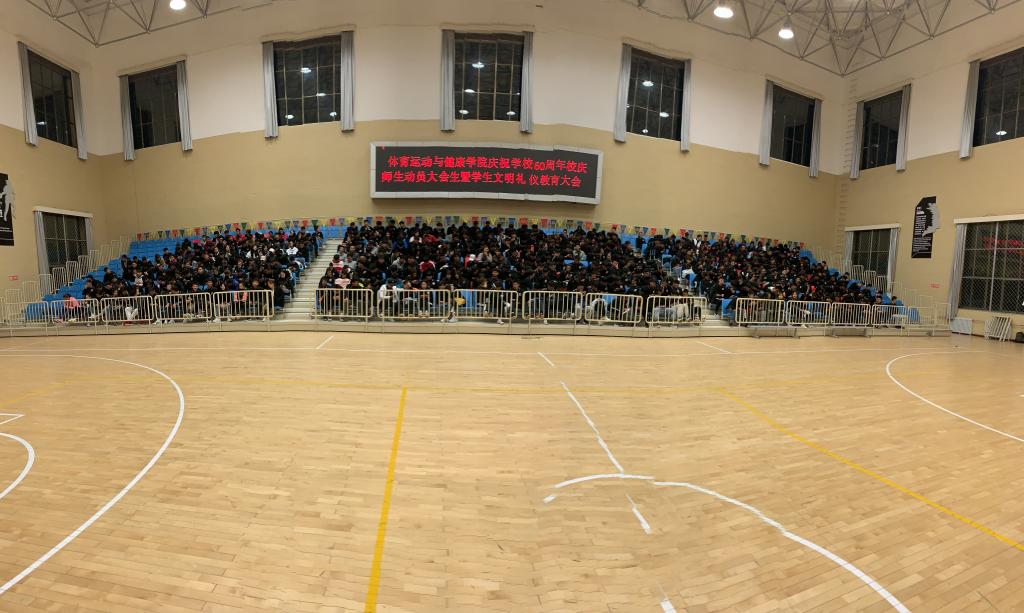 10月8日晚上7:30,pp电子模拟器官网在综合体育馆组织召开庆祝学校60周年校庆师生动员大会暨学生文明礼仪教育大会。体育学院领导班子成员、全体教职工及17级、18级、19级全体学生,共计600多人参加。会议由学院党总支副书记吴建全主持。