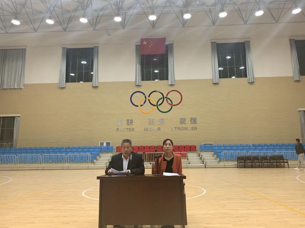 会上,副院长刘仁憨宣读了《pp电子模拟器官网庆祝学校60周年校庆活动实施方案》,副院长雍世仁宣读了关于校庆期间体育学院纪律规定,18级社体班学生李佳明同学做了表态发言。