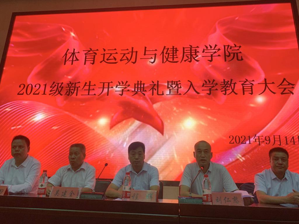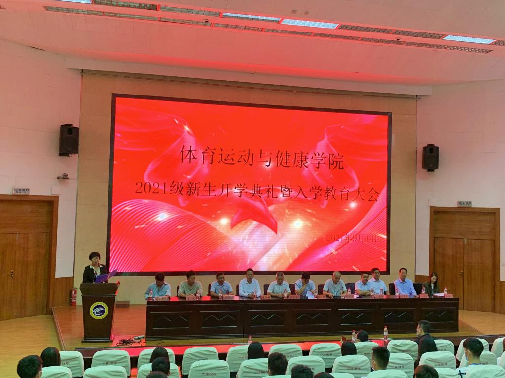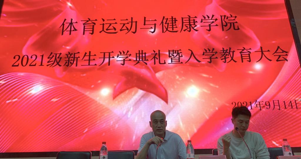 本次会议分为两部分进行。首先,副院长程晖教授代表全院师生员工向2021级新生表达了最热烈的欢迎和最衷心的祝福,讲述了49年来体育学院的办学历程和“守正•奋进”的师院精神,介绍了学院的师资队伍、教学资源、科研成果、体育设施、竞赛训练、人才培养等,并且阐释了学校以及学院改革转型的新思路和新举措。同时,程院长也向新生提了几点希望寄语:第一、要有对国家的责任感,树立正确的社会主义核心价值观,传承体育学院的优良传统,提振学习生活的精气神,励志勤学、刻苦磨炼,顽强拼搏,在担当中历练,在尽责中成长,在激情奋斗中绽放青春光芒、健康成长进步,争做新时代有机体育人。第二、要有对家人的责任感,砥砺奋斗,练就本领,夯实技能,做一个有担当、有责任的人。第三、要有对自己的责任感,抢抓机遇、增强才干、不负韶华,努力掌握科学文化知识和体育专业技能,努力提高人文素养,锤炼品格,争做新时代合格的大学生。