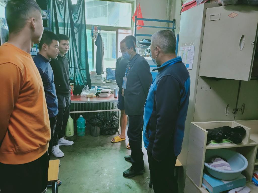 其次,曹校长深入弘毅公寓,详细询问了封闭管理期间学生的食宿、思想情绪稳定状况以及线上上课等情况。他叮嘱学生要顾全大局,听从学校安排,注意做好自我防护,以实际行动参与到疫情防控中,齐心协力,坚决打赢疫情防控阻击战,并强调要按时作息,认真上网课,不得翘课、逃课;做到不造谣、不信谣、不传谣;保持良好个人生活习惯,戴口罩、勤洗手、勤通风;做好自身健康监测,出现相关症状和健康码异常等情况要及时报告。