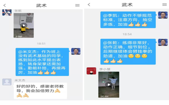 疫情阻碍了学校的正常运作,却阻止不了学生求学的渴望和老师关爱的心。面对病毒来袭、“停课不停教、停课不停学”的现状,毛老师借鉴国内外先进经验,采取课程录播+直播讲解的方式,在保障学生系统化理解武术动作的同时,通过互动激发学生对高难度动作的思考。她说:当下所有老师面临的是“没有围墙的大学校园、没有教室的教育学习和没有教师直面的讲解传授”,但无论在线下还是线上,战胜疫情所带来的挑战与困难,让学生们更好地学习,是每个老师的职责所在。
