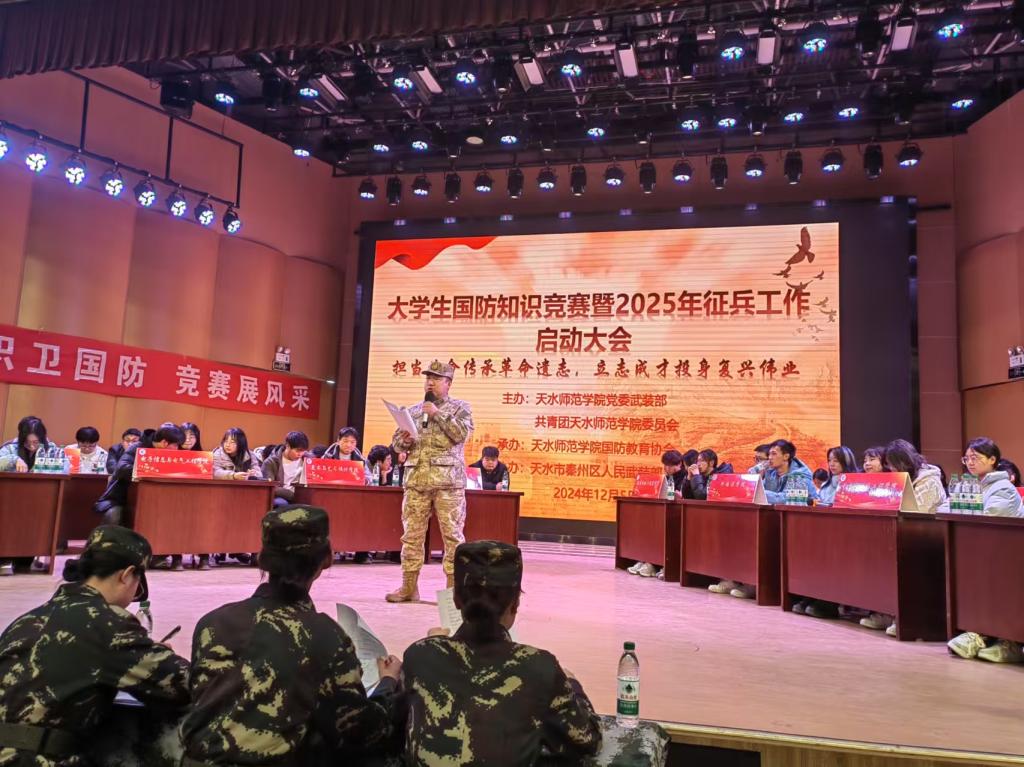 2024年12月5日,天水师范学院大学生国防知识竞赛活动在音乐厅举行。pp电子模拟器官网积极响应,经过严格选拔,推荐了三名优秀学生代表学院参加竞赛。本次竞赛分为速记、识图、抢答三个环节,共有全校18个二级学院的54名参赛选手参与角逐,竞争异常激烈。