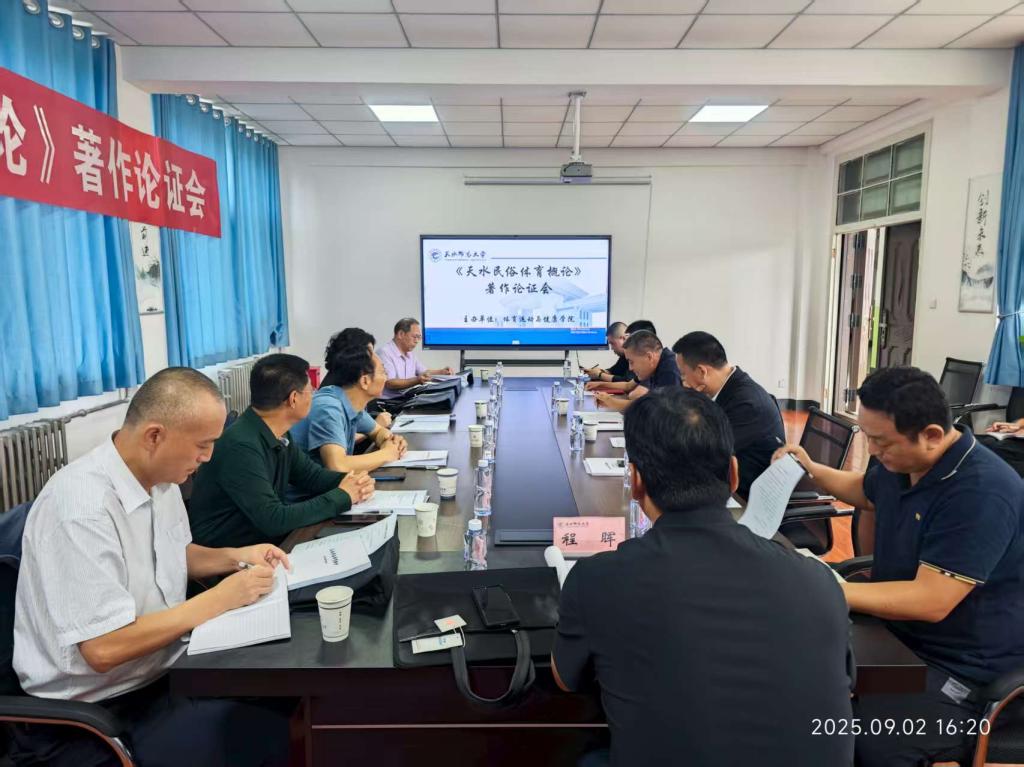9 月 2 日下午,pp电子模拟器官网pp电子模拟器官网在2号教学楼223会议室召开《天水民俗体育概论》著作论证会。邀请了天水市体育局局长成红梅,pp电子模拟器官网教务处处长杨学良,天水市地方志协会副会长兼秘书长台志杰,秦州区委党史和地方志研究室副主任杜小军,天水市地方志协会副会长、文史作家阎虎林,历史学专家、pp电子模拟器官网陇右文化研究中心主任苏海洋,体育学专家、pp电子模拟器官网卫生健康学院院长刘仁憨,体育学专家、甘肃省残疾人体育与康复研究中心主任程晖八位专家参与论证,学院班子成员及著作撰写团队成员共同参会。会议由学院党总支书记汪鸿宾主持。
