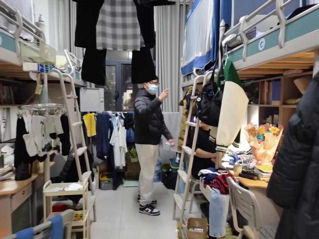 当晚,学院进行全体学生宿舍检查,检查范围涵盖2022-2025所有学生宿舍,检查小组由学院领导、各年级辅导员、班主任、学生会权益纪检部学生组成,重点围绕宿舍违规电器、地面清洁、物品摆放、床铺整理、卫生间卫生、通风情况等方面,旨在营造整洁、舒适、安全的住宿环境,培养学生良好的生活习惯。多数宿舍窗户敞开,通风良好,空气清新,未发现违规电器等;部分学生能将自己的物品归纳好,但是仍然有宿舍地面清洁不彻底,存在食物残渣、纸屑等垃圾。
