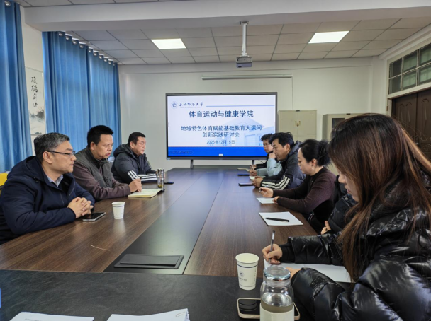 2025年12月15日,pp电子模拟器官网室召开“地域特色体育赋能基础教育大课间创新实践”研讨会,学院领导班子成员、相关骨干教师代表齐聚一堂,围绕基础教育大课间创编优化、地域体育文化融入、实践模式推广等核心议题展开深入研讨。教务处副处长裴涵昱应邀莅临指导并作专业点评,会议由苏兴田院长主持。