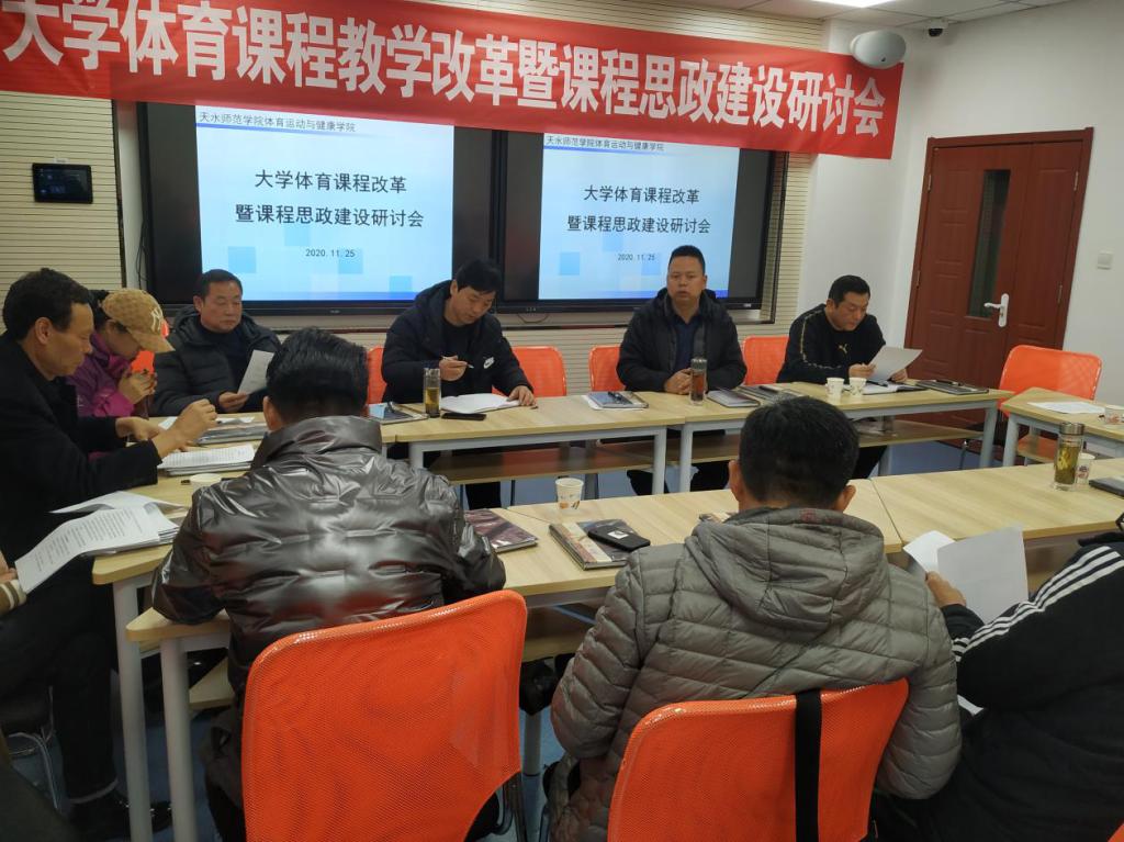 11月25日上午,pp电子模拟器官网召开大学体育课程改革暨课程思政建设研讨会,聚焦立德树人根本任务,全面推动大学体育课程和“课程思政”改革。学院领导、相关负责人及教师20余人参会。