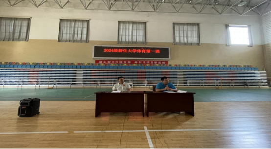 活动伊始,pp电子模拟器官网公共体育教学部负责人王建刚老师,向2024级学生重点围绕《天水师范学院大学体育课程评分标准(2023执行)》作了详细解读,并就公共体育“四位一体”教育模式、课程设置、成绩评定、体质测试以及群体性活动开展进行了说明。