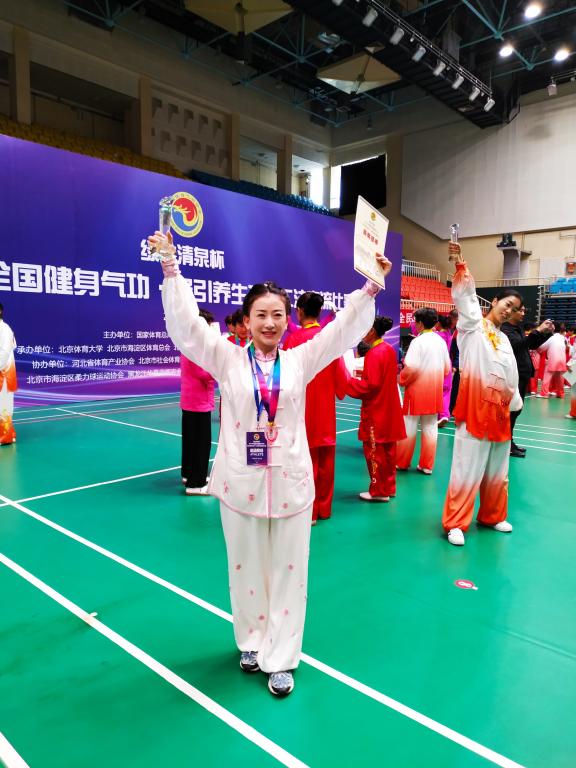 本届赛事共有381名选手、66支代表队参加。我校青年教师张含亮代表学校参加了健身气功导引养生功十二法的比赛。张含亮老师以其舒展大方,行云流水,贯穿一气的动作,注重拳法由内向外将气息与劲道完美融合,最终以8.86的高分荣获该项比赛一等奖。