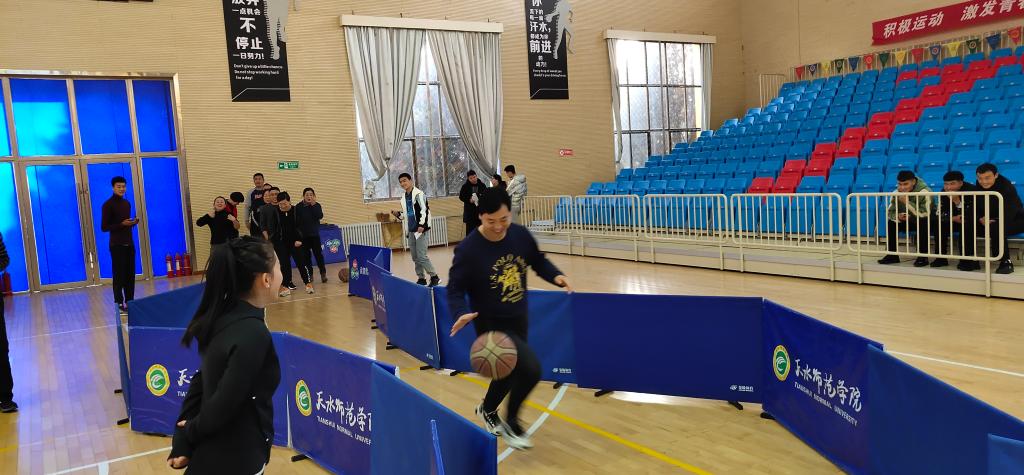 12月24日下午4:30,pp电子模拟器官网分工会在体育馆举办了pp电子模拟器官网“迎新年”趣味篮球接力赛活动,全院教职工用快乐奔跑的方式共同迎接新年的到来。学院工会主席苏兴田在开幕式上致辞,工会委员魏玉琴主持了开幕式。