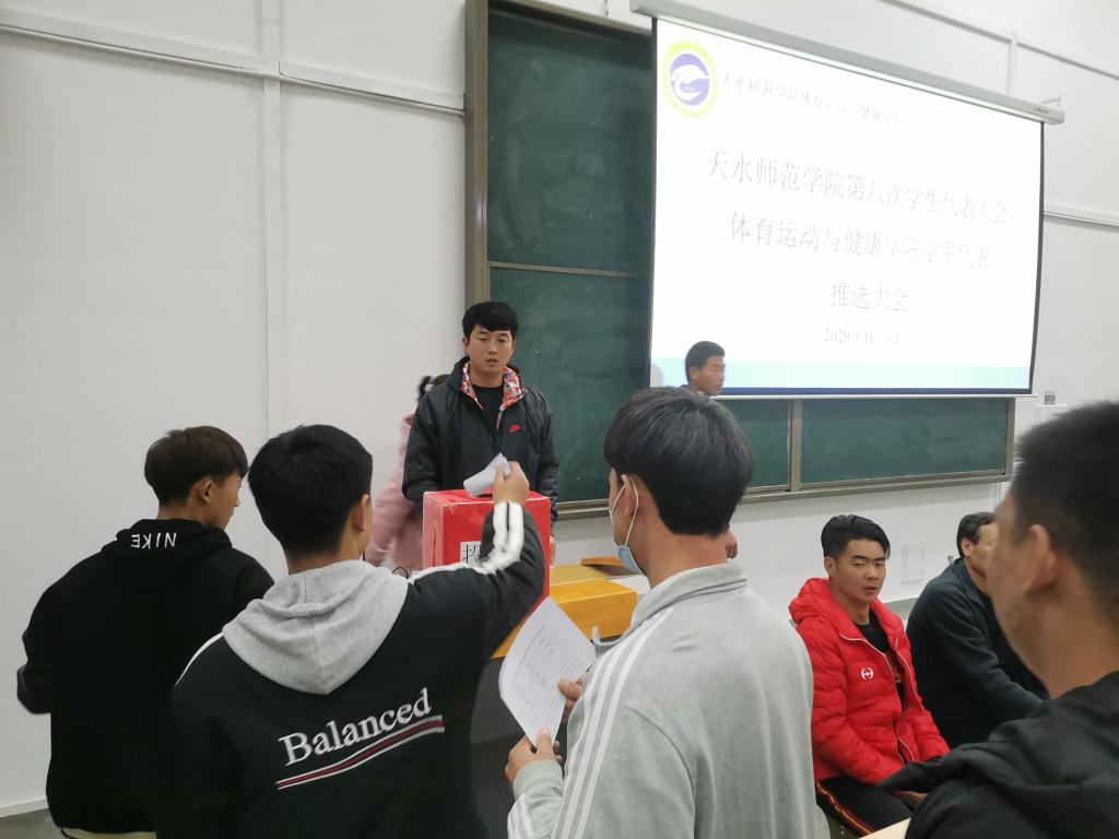 11月3日晚,在二号教学楼222教室举行天水师范学院第八次学生代表大会pp电子模拟器官网学生代表推选大会,学院分管学生工作领导、学院团委书记、学院辅导员,以及各班学生代表和学生会成员共计200余人参加。此次推选会由学院团委书记王昊主持。