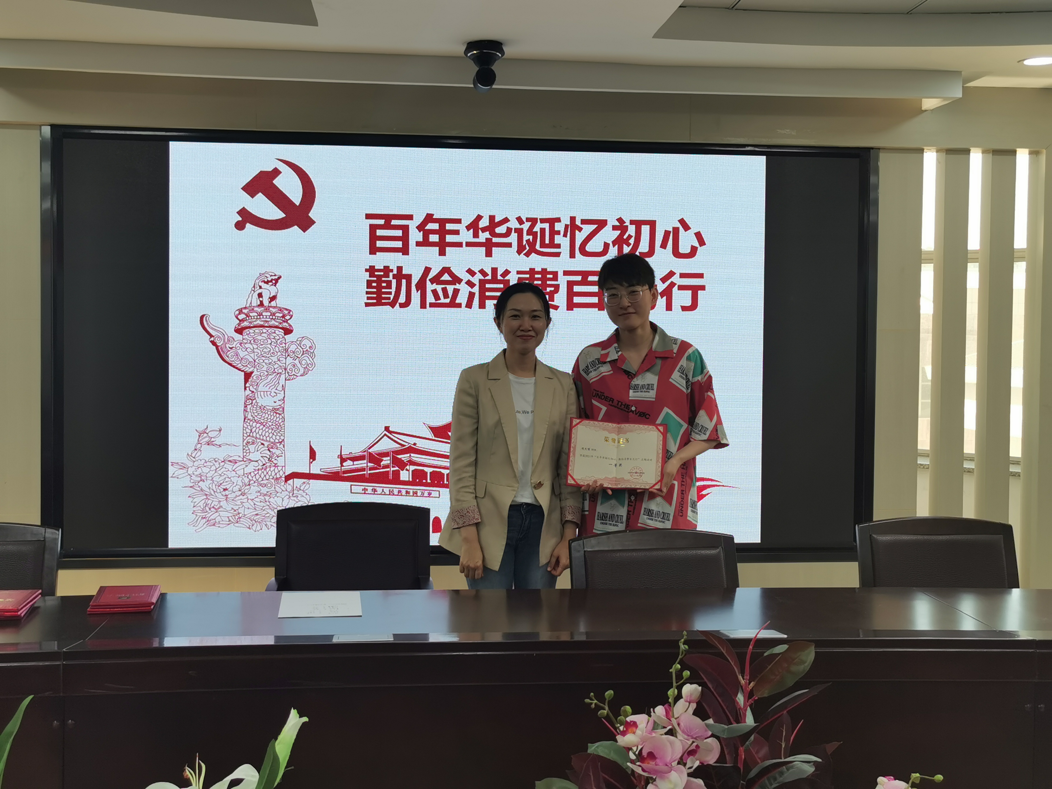 为培养新时代大学生合理消费的观念,形成艰苦奋斗、勤俭节约的意识,yl7703永利官网举办了“百年华诞忆初心,勤俭消费百元行”活动,并于6月17日在东荣大厦404室对获奖作品进行展示。展示活动由学院党委副书记赵毅博老师主持。