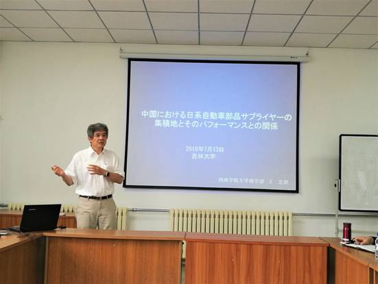 2018年7月14日,日本西南学院大学商学部学部长王忠毅教授应邀访问东北亚研究院及日本研究所,并以 “中国における日系自動車部品サプライヤーの集積地とそのパフォーマンスとの関係” (日本汽车零部件供应商空间分布与企业效益关系的实证研究)为题,进行了一场精彩生动的学术报告。